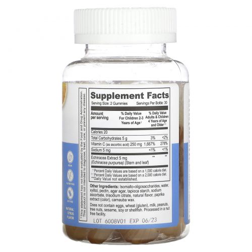 Описание товара Lifeable, Витамин C для детей и жевательные таблетки с эхинацеей, цитрусовые, 125 мг, 60 шт.