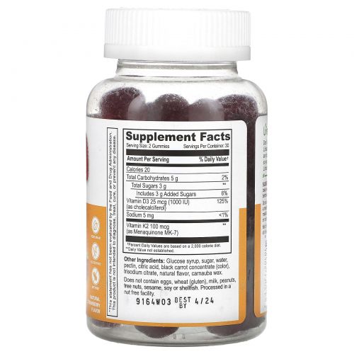 Описание товара Lifeable, Жевательные мармеладки с витамином D3 и K2, натуральная клубника, 60 жевательных таблеток