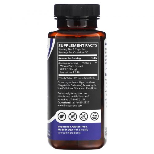 Описание товара LifeSeasons, Экстракт бакопы, 450 мг, 60 растительных капсул