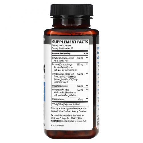 Описание товара LifeSeasons, NeuroQ Brain Health, 60 растительных капсул