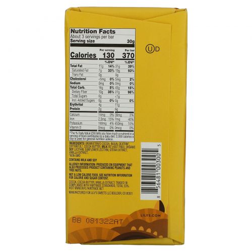 Описание товара Lily's Sweets, Dark Chocolate, Original, 3 oz (85 g)