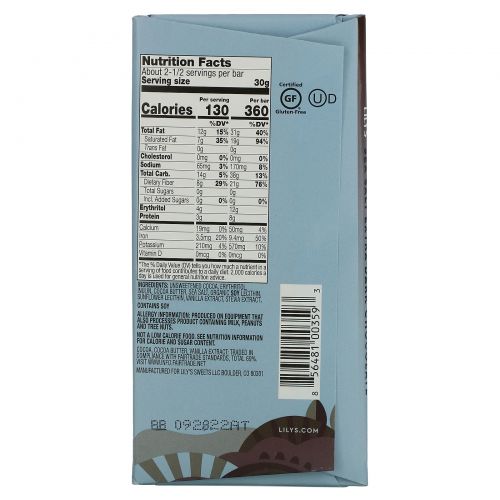 Описание товара Lily's Sweets, темный шоколад, с морской солью, 70% какао, 80 г (2,8 унции)