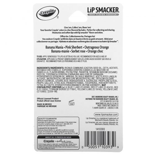 Описание товара Lip Smacker, Crayola, бальзам для губ, 3 вкуса, 3 шт. по 4 г (0,14 унции)