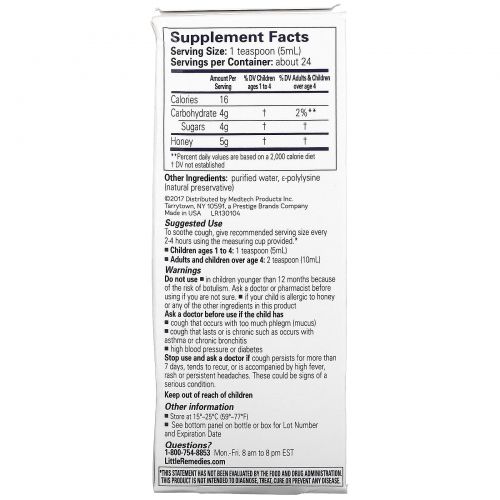 Описание товара Little Remedies, 100% натуральный медовый сироп от кашля, для детей от 12 месяцев, 118 мл (4 жидк. Унции)