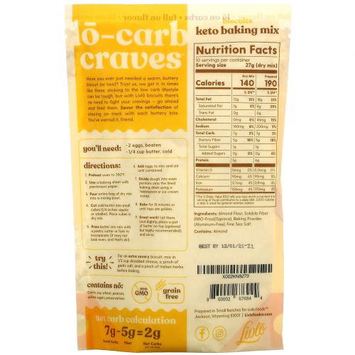 Описание товара Livlo, Biscuits, Keto Baking Mix, Classic Butter, 9.4 oz (266 g)