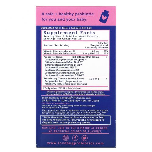 Описание товара LoveBug Probiotics, пренатальный пробиотик, 20 млрд КОЕ, 30 капсул