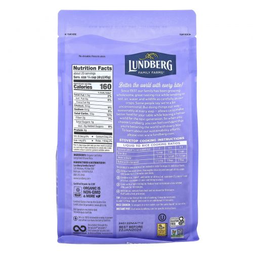 Lundberg Family Farms® поддерживает право потребителей выбирать продукты, которые не были генетически модифицированы. Этот продукт произведен в соответствии с лучшими практиками стандарта Non-GMO Projects.
