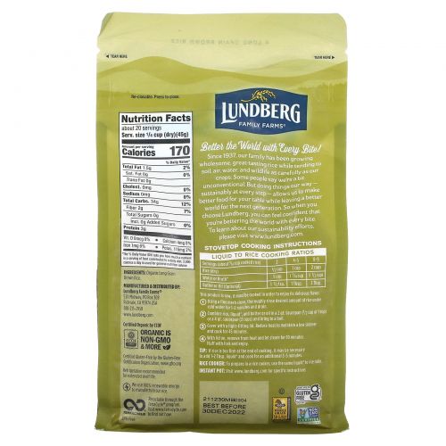 Lundberg Family Farms® поддерживает право потребителя выбирать продукты, которые не были генетически модифицированы. Этот продукт произведен в соответствии с лучшими практиками стандарта Non-GMO Project.