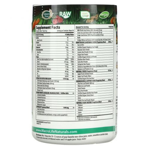 Описание товара Macrolife Naturals, Macro Greens, суперпродукт, богатый питательными веществами, 10 унций (283,5 г)