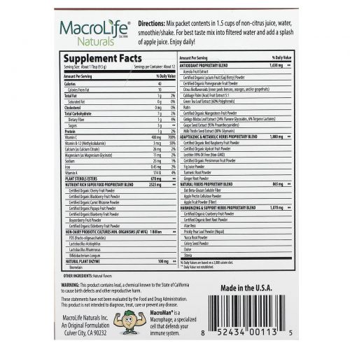 Описание товара Macrolife Naturals, Miracle Reds, суперфуд, годжи, гранат, асаи, мангостан, 12 пакетиков по 9,5 г (0,3 унции)