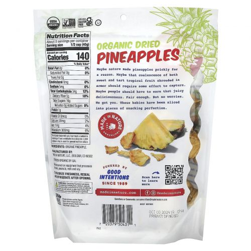 Описание товара Made in Nature, Ананас, сушеный и без серы, 7,5 унций (213 г)