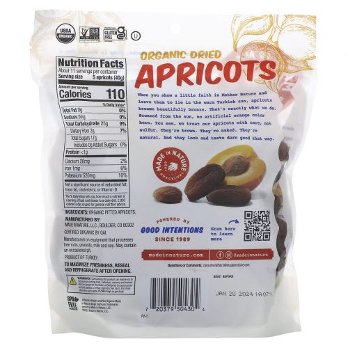 Описание товара Made in Nature, Organic Dried Apricots, In The Buff Supersnacks, 1 lb (454 g)