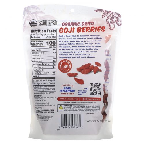 Описание товара Made in Nature, Organic Dried Goji Berries, 7 oz (198 g)