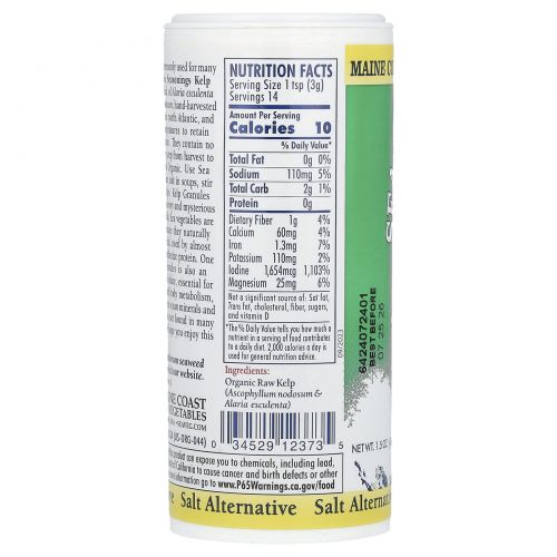 Описание товара Maine Coast Sea Vegetables, Organic, морские приправы, морские водоросли в гранулах, 1,5 унции (43 г)