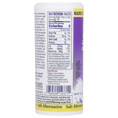 Описание товара Maine Coast Sea Vegetables, Sea Seasonings, органическая тройная смесь в хлопьях, 28 г (1 унция)