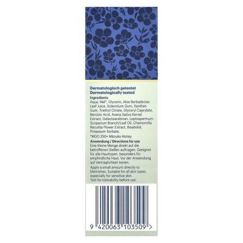 - Легкий гель с 8% медом манука, маслом манука и алоэ