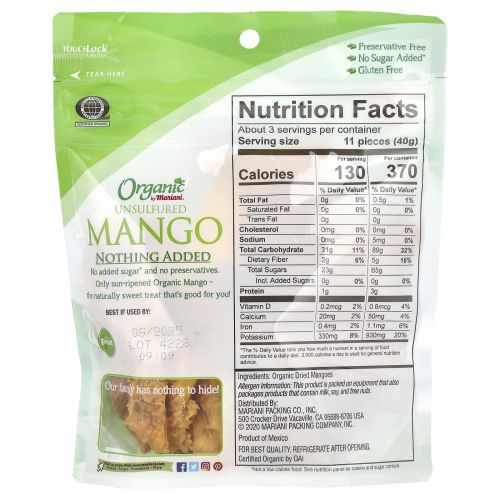 Описание товара Mariani Dried Fruit, Organic, Unsulfured Mango, 4 oz (113 g)