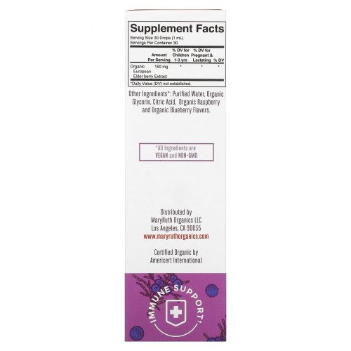 Описание товара MaryRuth Organics, Органические жидкие капли из бузины, травы, голубика + малина, 30 мл (1 жидк. Унция)