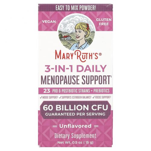 MaryRuth's, 3 в 1 для ежедневной поддержки при менопаузе, без вкусовых добавок, 60 миллиардов КОЕ, 15 г (0,5 унции)
