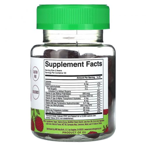 Описание товара MaryRuth's, мультивитамины в бобах, для детей, со вкусом малины, 60 бобов