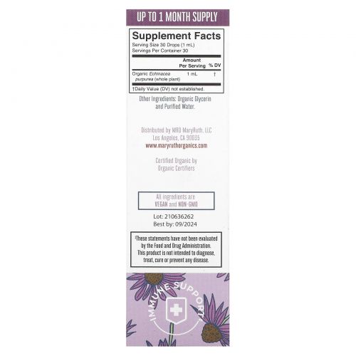 Описание товара MaryRuth's, органическая эхинацея пурпурная, капли, без спирта, 30 мл (1 жидк. унция)