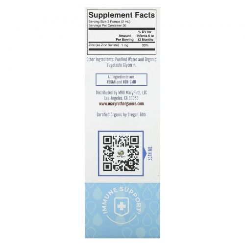 Описание товара MaryRuth's, органический ионный цинк, для младенцев, в каплях, для детей 6–12 месяцев, без ароматизаторов, 60 мл (2 жидк. унции)