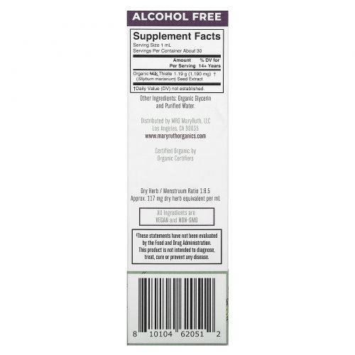 Описание товара MaryRuth's, органический жидкий экстракт семян расторопши, без спирта, 1190 мг, 30 мл (1 жидк. унция)