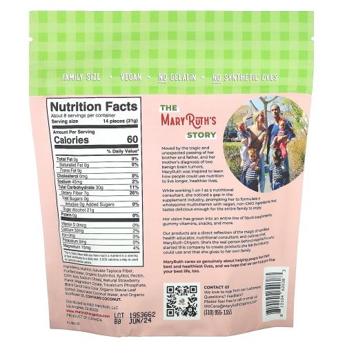 Описание товара MaryRuth's, жевательные мармеладки в виде мишек, со вкусом клубники, 240 г