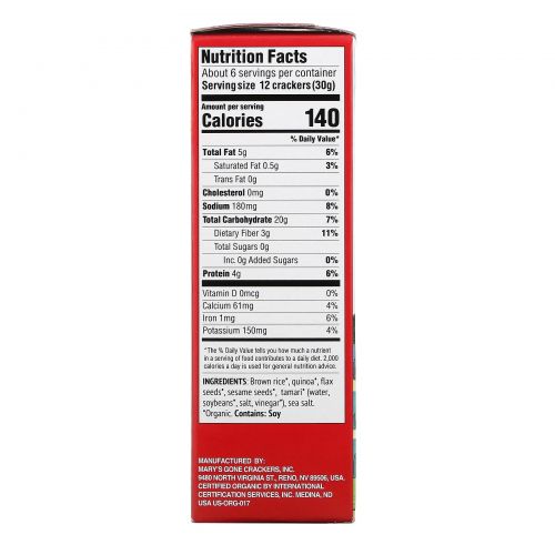 Описание товара Mary's Gone Crackers, Настоящие крекеры, 6,5 унции (184 г)