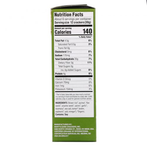 Описание товара Mary's Gone Crackers, Органические крекеры с травами, 6,5 унции (184 г)