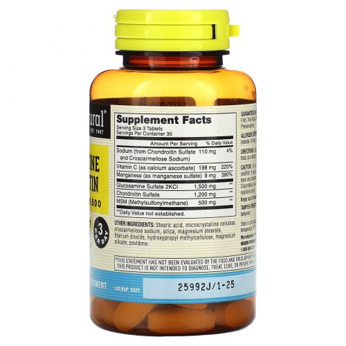 Описание товара Mason Natural, Глюкозамин, хондроитин + МСМ, 90 таблеток