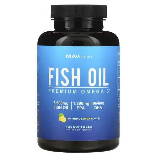 MAV Nutrition, Fish Oil, Premium Omega 3, Natural Lemon, 120 Softgels