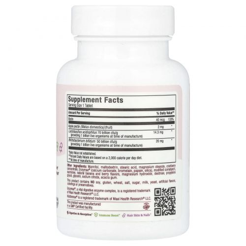 Описание товара Maxi Health, KiddieMax® Yummie Oraldophilus ™, натуральные тропические фрукты, 50 жевательных таблеток