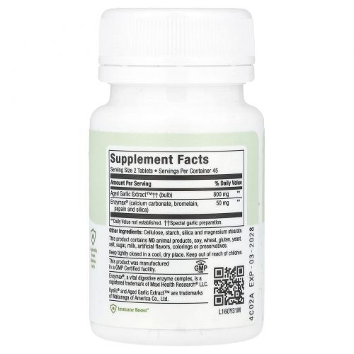 Описание товара Maxi Health, Kyolic®, Aged Garlic Extract ™, 90 таблеток