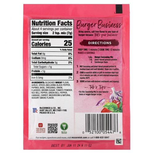 Описание товара McCormick, Burger Business от Табиты Браун, без соли, 28 г (1 унция)