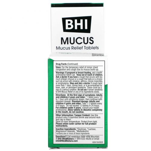 Описание товара MediNatura, BHI, средство для уменьшения слизеобразования, 100 таблеток
