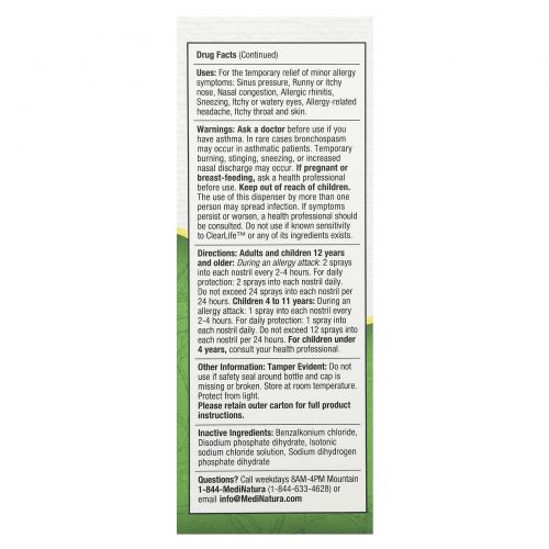 MediNatura, ClearLife, спрей против аллергии, 0,68 жидких унции (20 мл)