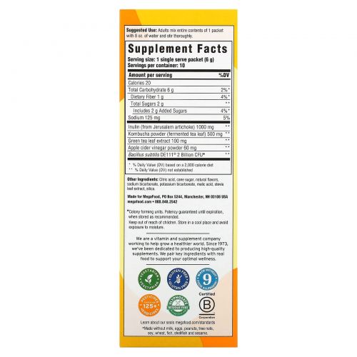 Описание товара MegaFood, Digestive Health, Water Enhancer, чайный гриб с лимоном и имбирем, 10 пакетиков по 6 г (0,21 унции)