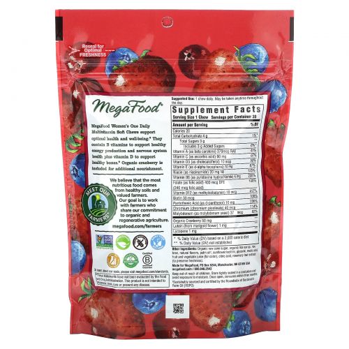Описание товара MegaFood, Мультивитамины для женщин в жевательных пастилках, ягодное ассорти, 30 жевательных пастилок в индивидуальной упаковке