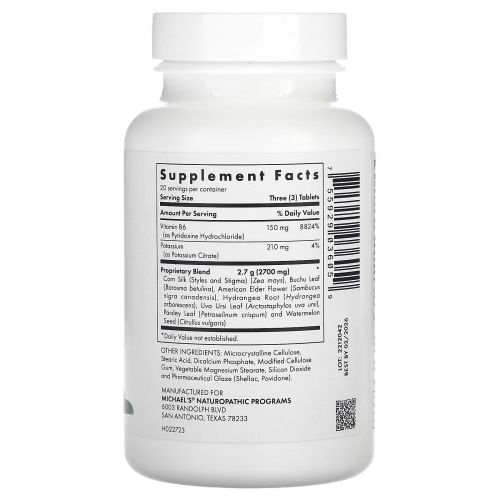 Описание товара Michael's Naturopathic, Water Balance Factors, 60 Vegetarian Tablets