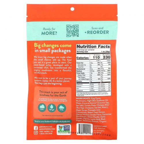 Описание товара Moku, Вяленое мясо на растительной основе, оригинальное, 56 г (2 унции)