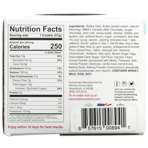 Описание товара Mommy Knows Best, Lactation Cookies, Oatmeal Rainbow Candy, 10 Cookies, 2 oz Each