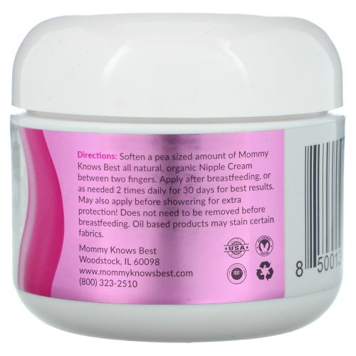 Описание товара Mommy Knows Best, Успокаивающий, органический крем для сосков, 60 мл (2 жидк. Унции)