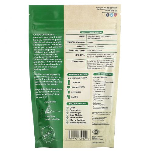 Описание товара MRM, Порошок необработанного органического зеленого банана, 240 г (8,5 унции)