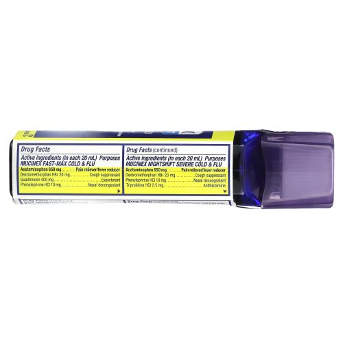Описание товара Mucinex, Day & Night, маска для лица от простуды и гриппа, максимальная сила действия, для детей от 12 лет, 2 флакона по 180 мл (6 жидк. унций)
