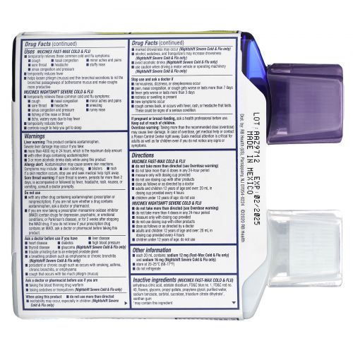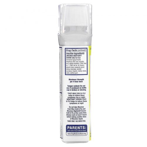 Не принимайте одновременно Mucinex Fast-Max от простуды и гриппа и Mucinex Nightshift от тяжелой простуды и гриппа. Всегда подождите не менее 4 часов, прежде чем принять еще одну дозу Mucinex в жидкой форме.