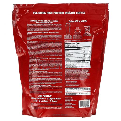 Теперь вы можете наслаждаться способностью № 1 в мире по продажам добавок для наращивания мышечной массы. Изолят говяжьего протеина в виде чашечки горячего кофе в качестве начала дня или в виде освежающего холодного кофейного коктейля для заряда энергии во время тренировки. CARNIVOR Coffee изготовлен из клинически протестированного говяжьего белка, проверенного USDA, и обжаренного кофе премиального качества, обеспечивающего насыщенный вкус. Каждая порция содержит 23 г белка, 0 жиров, 0 сахаров, 0 лактозу, 0 г глютена и 160 мг полностью натурального кофеина, что делает ее идеальным напитком с высоким содержанием протеина.
