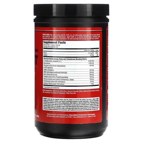 Описание товара MuscleMeds, Nitrotest, андрогенный предтренировочный усилитель, арбуз, 468 г (16,51 унции)