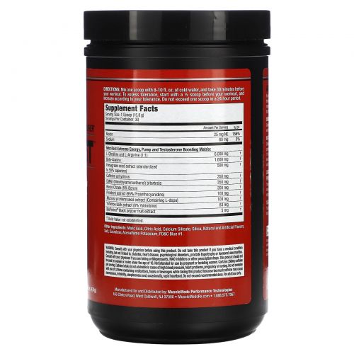 Перед использованием этого продукта проконсультируйтесь с врачом. Не принимайте этот продукт, если у вас есть заболевания, включая, помимо прочего, диабет, болезни сердца, психологические расстройства, гипертрофию простаты или гормональные нарушения. Проконсультируйтесь с врачом, если вы принимаете антидепрессанты, ингибиторы МАО или другие рецептурные препараты. Этот продукт не следует использовать женщинам и мужчинам младше 18 лет. Не предназначено для беременных и кормящих женщин. Каждая порция содержит 350 мг кофеина. Не рекомендуется употреблять кофеин в случае высокого кровяного давления, проблем с сердцем, беременности или кормления грудью. Не следует принимать одновременно с приемом этого продукта лекарствами, продуктами питания или напитками, содержащими кофеин, поскольку слишком много кофеина может вызвать нервозность, раздражительность, бессонницу и, иногда, учащенное сердцебиение. Не следует превышать рекомендуемую дозировку. Только для взрослых.