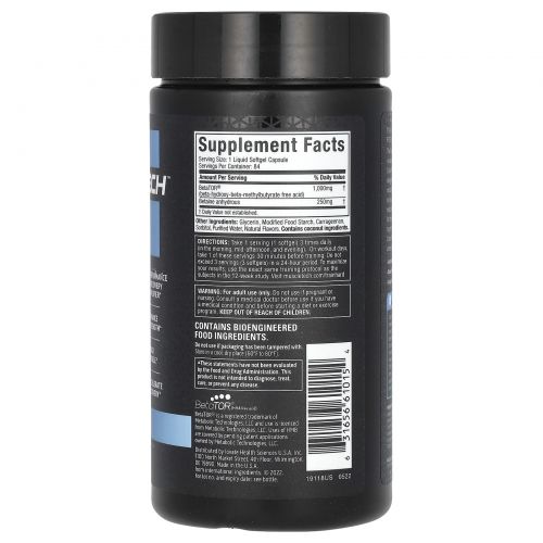 Описание товара Muscletech, Clear Muscle, HMB, свободная кислота, 84 капсулы с жидкостью